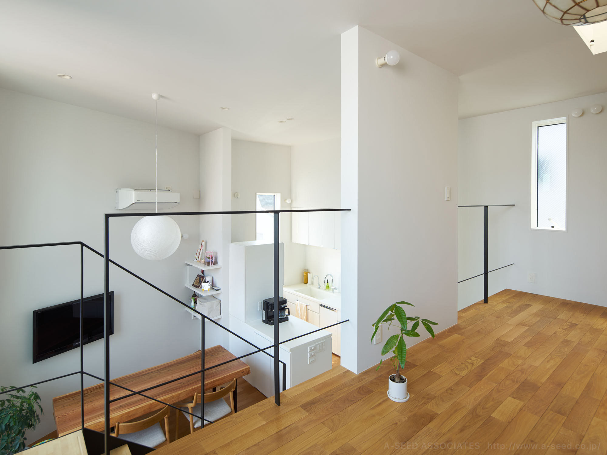1階北側の日陰の涼風を2階のLDKでもいかすためのスキップフロア一。