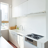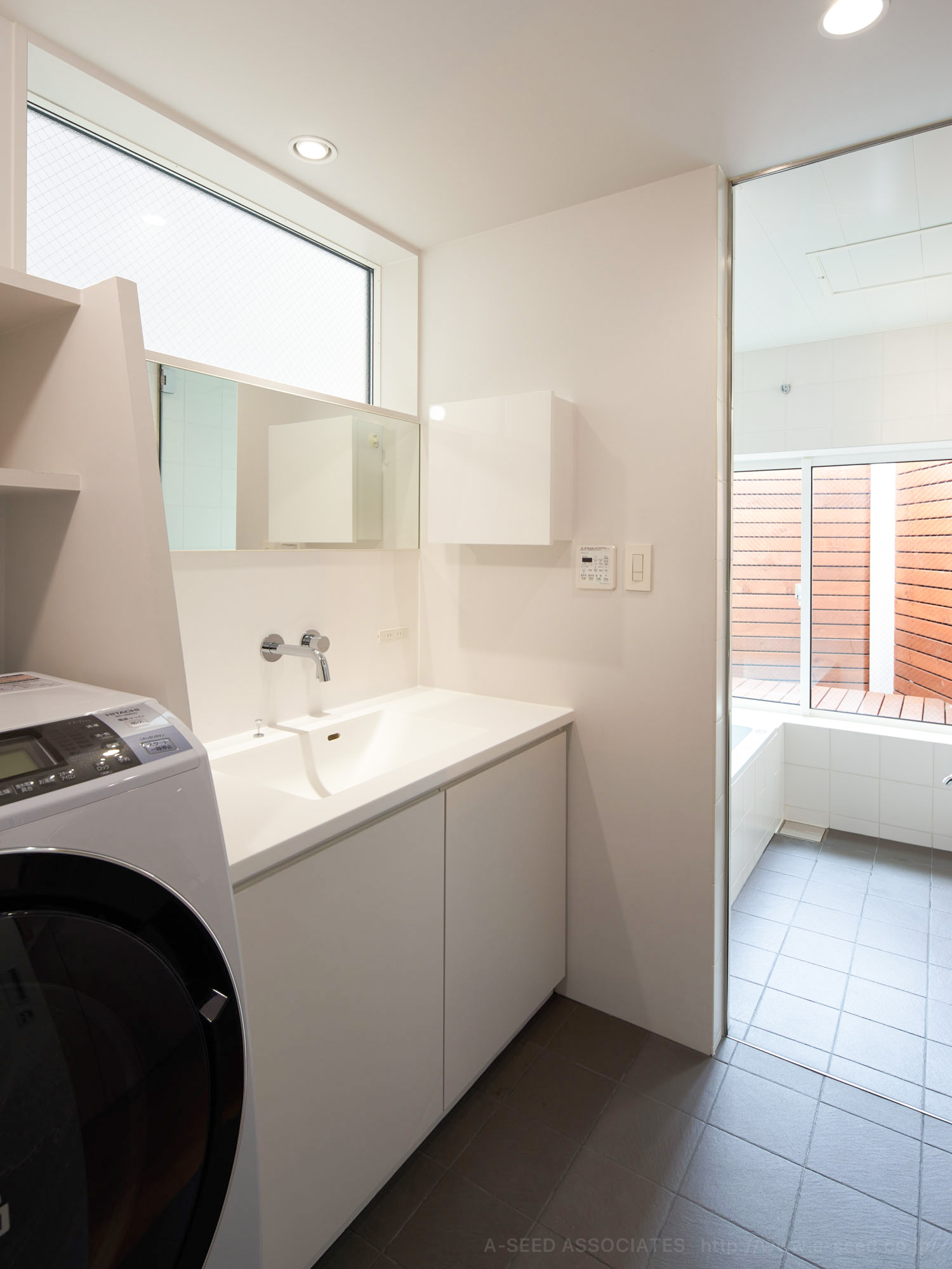 幹線道路に位置した狭小地で、日の光と北側の涼風を最大限いかした家です。